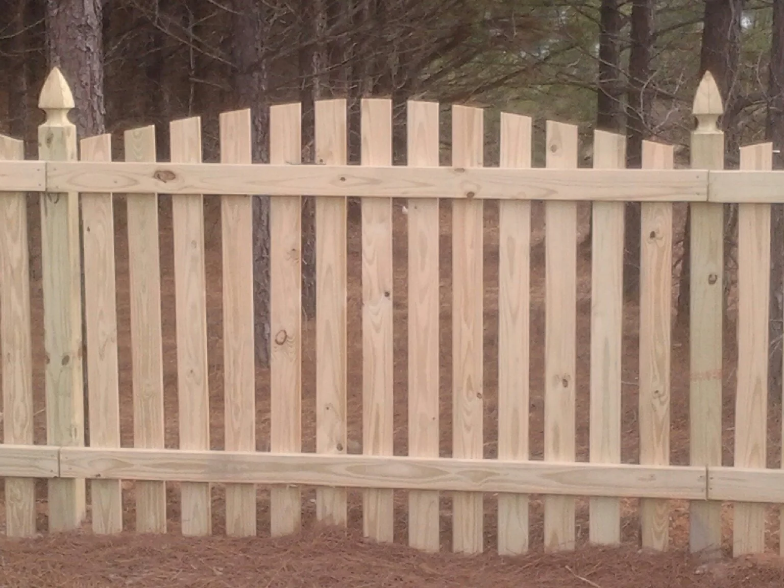 A wood picket fence is a classic and charming type of fence that is commonly seen in residential areas. This fence is typically constructed from natural wood materials, such as cedar or pine, and is made up of evenly spaced vertical boards (pickets) that are attached to horizontal rails.